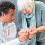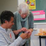 In dem Generationenprojekt haben sich Jugendliche im Alter von 14-18 Jahen, Schüler*innen der Förderklassen 9-11 der Elbschule, und Senioren und Seniorinnen mit dem Thema alt werden und alt seinauseinander gesetzt. An mehreren Projekttagen wurde eine Begegnung der unterschiedlichen Generationen ermöglicht, sodass Gemeinsamkeiten und Unterschiede festgestellt werden konnten. An den Projekttagen gab es verschiedene Angebote um die Lebenswelt der anderen Generation kennenzulernen. Neben einer Schulführung und einem gemeinsamen Kafffeeklatsch gab es verschiedene Workshops zum Thema Schwerhörigkeit und dem Umgang damit. Die Workshops wurden von den Jugendlichen in Zusammenarbeit mit den Lehrerinnen und Susanne Tod selbst entwickelt und auch die Senior*innen durften eigene Workshops anbieten. So haben die Senior*innen z. B. gelernt, wie das Fingeralphabet funktioniert und sich gemeinsam mit den Jugendlichen einen Gebärdennamen überlegt, der dann aufgenommen wurde. Die Jugendlichen hingegen haben gelernt wie man strickt und es wurden Muffins gebacken. Das Ziel, die andere Generation kennenzulernen, wurde von beiden Gruppen erreicht.